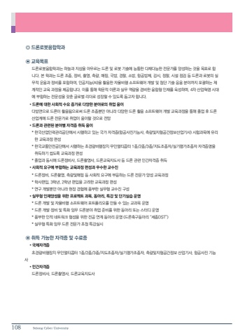 108 Sejong Cyber University %u25ce %ub4dc%ub860%ub85c%ubd07%uc735%ud569%ud559%uacfc %u2299 %uad50%uc721%ubaa9%ud45c %ub4dc%ub860%ub85c%ubd07%uc735%ud569%ud559%uacfc%ub294 %ud558%ub298%uacfc %uc9c0%uc0c1%uc744 %uc544%uc6b0%ub974%ub294 %ub4dc%ub860 %ubc0f %ub85c%ubd07 %uae30%uc220%uc5d0 %ub2a5%ud1b5%ud55c %ub2e4%uc7ac%ub2e4%ub2a5%ud55c %uc804%ubb38%uac00%ub97c %uc591%uc131%ud558%ub294 %uac83%uc744 %ubaa9%ud45c%ub85c %ud569%ub2c8%ub2e4. %ubcf8 %ud559%uacfc%ub294 %ub4dc%ub860 %uc870%uc885, %uc815%ube44, %ucd2c%uc601, %uce21%ub7c9, %ub9e4%ud551, %uad6d%ubc29, %uacbd%ucc30, %uc18c%ubc29, %ud56d%uacf5%ubc29%uc81c, %uac10%uc2dc, %uc815%ucc30, %uc2dc%uc124 %uc810%uac80 %ub4f1 %ub4dc%ub860%uacfc %ub85c%ubd07%uc758 %uc2e4%ubb34%uc801 %uc6b4%uc6a9%uacfc %uc815%ube44%ub97c %ud3ec%ud568%ud558%uc5ec, %uc778%uacf5%uc9c0%ub2a5(AI)%uc744 %ud65c%uc6a9%ud55c %uc790%uc728%ube44%ud589 %uc18c%ud504%ud2b8%uc6e8%uc5b4 %uac1c%ubc1c %ubc0f %ucca8%ub2e8 %uae30%uc220 %uc751%uc6a9 %ubd84%uc57c%uae4c%uc9c0 %ud3ec%uad04%ud558%ub294 %uccb4%uacc4%uc801%uc778 %uad50%uc721 %uacfc%uc815%uc744 %uc81c%uacf5%ud569%ub2c8%ub2e4. %uc774%ub97c %ud1b5%ud574 %ud559%ubb38%uc801 %uc774%ub860%uacfc %uc2e4%ubb34 %uc5ed%ub7c9%uc744 %uacb8%ube44%ud55c %uc735%ud569%ud615 %uc778%uc7ac%ub97c %uc721%uc131%ud558%uba70, 4%ucc28 %uc0b0%uc5c5%ud601%uba85 %uc2dc%ub300%uc5d0 %ubd80%ud569%ud558%ub294 %uc804%ubb38%uc131%uc744 %uac16%ucd98 %uae00%ub85c%ubc8c %ub9ac%ub354%ub85c %uc131%uc7a5%ud560 %uc218 %uc788%ub3c4%ub85d %ub3d5%uace0%uc790 %ud569%ub2c8%ub2e4. %u2022 %ub4dc%ub860%uc5d0 %ub300%ud55c %uc0ac%ud68c%uc801 %uc218%uc694 %uc99d%uac00%ub85c %ub2e4%uc591%ud55c %ubd84%uc57c%ub85c%uc758 %ucde8%uc5c5 %uc6a9%uc774 %ub2e4%ubc29%uba74%uc73c%ub85c %ub4dc%ub860%uc774 %ud65c%uc6a9%ub428%uc73c%ub85c%uc368 %ub4dc%ub860 %uc870%uc885%ubfd0%ub9cc %uc544%ub2c8%ub77c %ub2e4%uc591%ud55c %ub4dc%ub860 %ud65c%uc6a9 %uc18c%ud504%ud2b8%uc6e8%uc5b4 %uac1c%ubc1c %uad50%uc721%uacfc%uc815%uc744 %ud1b5%ud574 %uc878%uc5c5 %ud6c4 %ub4dc%ub860 %uc0b0%uc5c5%uacc4%uc5d0 %ub4dc%ub860 %uc804%ubb38%uac00%ub85c %ucde8%uc5c5%uc774 %uc6a9%uc774%ud560 %uac83%uc73c%ub85c %uc804%ub9dd %u2022 %ub4dc%ub860%uacfc %uad00%ub828%ub41c %ubd84%uc57c%ubcc4 %uc790%uaca9%uc99d %ucde8%ub4dd %uc6a9%uc774 * %ud55c%uad6d%uc0b0%uc5c5%uc778%ub825%uad00%ub9ac%uacf5%ub2e8%uc5d0%uc11c %uc2dc%ud589%ud558%uace0 %uc788%ub294 %uad6d%uac00 %uc790%uaca9%uc99d(%ud56d%uacf5%uc0ac%uc9c4%uae30%ub2a5%uc0ac, %uce21%ub7c9%ubc0f%uc9c0%ud615%uacf5%uac04%uc815%ubcf4%uc0b0%uc5c5%uae30%uc0ac) %uc2dc%ud5d8%uacfc%ubaa9%uc5d0 %uc720%ub9ac%ud55c %uad50%uc721%uacfc%uc815 %ud3b8%uc131 * %ud55c%uad6d%uad50%ud1b5%uc548%uc804%uacf5%ub2e8%uc5d0%uc11c %uc2dc%ud589%ud558%ub294 %ucd08%uacbd%ub7c9%ube44%ud589%uc7a5%uce58 %ubb34%uc778%uba40%ud2f0%ucf65%ud130 1%uc885/2%uc885/3%uc885/%uc9c0%ub3c4%uc870%uc885%uc790/%uc2e4%uae30%ud3c9%uac00%uc870%uc885%uc790 %uc790%uaca9%uc99d%uba85%uc744 %ucde8%ub4dd%ud558%uae30 %uc27d%ub3c4%ub85d %uad50%uc721%uacfc%uc815 %ud3b8%uc131 * %uc878%uc5c5%uacfc %ub3d9%uc2dc%uc5d0 %ub4dc%ub860%uc815%ube44%uc0ac, %ub4dc%ub860%ucd2c%uc601%uc0ac, %ub4dc%ub860%uad50%uc721%uc9c0%ub3c4%uc0ac %ub4f1 %ub4dc%ub860 %uad00%ub828 %ubbfc%uac04%uc790%uaca9%uc99d %ucde8%ub4dd %u2022 %uc0ac%ud68c%uc801 %uc694%uad6c%uc5d0 %ubd80%ud569%ud558%ub294 %uad50%uc721%uacfc%uc815 %ud3b8%uc131%uacfc %uc6b0%uc218%ud55c %uad50%uc218%uc9c4 * %ub4dc%ub860%uc815%ube44, %ub4dc%ub860%ucd2c%uc601, %uce21%ub7c9%ubc0f%ub9e4%ud551 %ub4f1 %uc0ac%ud68c%uc801 %uc694%uad6c%uc5d0 %ubd80%uc751%ud558%ub294 %ub4dc%ub860 %uc804%ubb38%uac00 %uc591%uc131 %uad50%uc721%uacfc%uc815 * %ud559%uc0ac%ud3b8%uc785, 3%ud559%ub144, 2%ud559%ub144 %ud3b8%uc785%uc744 %uace0%ub824%ud55c %uad50%uc721%uacfc%uc815 %ud3b8%uc131 * %uc5f0%uad6c %uac1c%ubc1c%ubfd0%ub9cc %uc544%ub2c8%ub77c %ud604%uc7a5 %uacbd%ud5d8%uc5d0 %ud48d%ubd80%ud55c %uc2e4%ubb34%ud615 %uad50%uc218%uc9c4 %uad6c%uc131 %u2022 %uc2e4%ubb34%ud615 %uc778%uc7ac%uc591%uc131%uc744 %uc704%ud55c %ud504%ub85c%uc81d%ud2b8 %uacfc%ubaa9, %ub3d9%uc544%ub9ac, %ud2b9%uac15 %ubc0f %ub2e8%uae30%uc2e4%uc2b5 %uc6b4%uc601 * %ub4dc%ub860 %uac1c%ubc1c %ubc0f %uc790%uc728%ube44%ud589 %uc18c%ud504%ud2b8%uc6e8%uc5b4 %ud3ec%ud2b8%ud3f4%ub9ac%uc624%ub97c %ub9cc%ub4e4 %uc218 %uc788%ub294 %uad50%uacfc%ubaa9 %uc6b4%uc601 * %ub4dc%ub860 %uac1c%ubc1c%u00b7%uc815%ube44 %ubc0f %ud2b9%ud654 %uc784%ubb34 %ub4dc%ub860%ubd84%uc57c %ucde8%uc5c5 %uc900%ube44%ub97c %uc704%ud55c %ub3d9%uc544%ub9ac %ub610%ub294 %uc2a4%ud130%ub514 %uc6b4%uc601 * %ud48d%ubd80%ud55c %uc778%uc801 %ub124%ud2b8%uc6cc%ud06c %ud615%uc131%uc744 %uc704%ud55c %uc804%uacf5 %uc5f0%uacc4 %ub3d9%uc544%ub9ac %uc6b4%uc601 (%ub4dc%ub860%ucd95%uad6c%ub3d9%uc544%ub9ac %u201c%uc138%uc885DST%u201d) * %uc2e4%ubb34%ud615 %ud2b9%ud654 %uc784%ubb34 %ub4dc%ub860 %uc804%ubb38%uac00 %ucd08%uccad %ud2b9%uac15%uc2e4%uc2dc %u2299 %ucde8%ub4dd %uac00%ub2a5%ud55c %uc790%uaca9%uc99d %ubc0f %uc218%ub8cc%uc99d %u2022 %uad6d%uc81c%uc790%uaca9%uc99d %ucd08%uacbd%ub7c9%ube44%ud589%uc7a5%uce58 %ubb34%uc778%uba40%ud2f0%ucf65%ud130 1%uc885/2%uc885/3%uc885/%uc9c0%ub3c4%uc870%uc885%uc790/%uc2e4%uae30%ud3c9%uac00%uc870%uc885%uc790, %uce21%ub7c9%ubc0f%uc9c0%ud615%uacf5%uac04%uc815%ubcf4 %uc0b0%uc5c5%uae30%uc0ac, %ud56d%uacf5%uc0ac%uc9c4 %uae30%ub2a5%uc0ac %u2022 %ubbfc%uac04%uc790%uaca9%uc99d %ub4dc%ub860%uc815%ube44%uc0ac, %ub4dc%ub860%ucd2c%uc601%uc0ac, %ub4dc%ub860%uad50%uc721%uc9c0%ub3c4%uc0ac