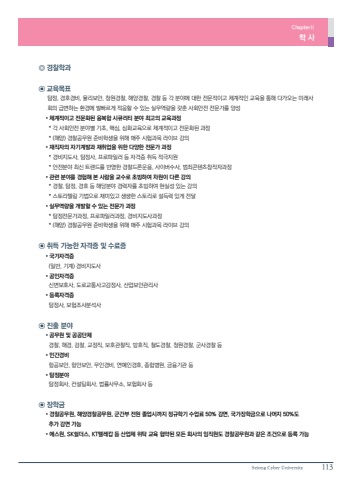 Sejong Cyber University 113Chapter%u2161%ud559 %uc0ac %u25ce %uacbd%ucc30%ud559%uacfc %u2299 %uad50%uc721%ubaa9%ud45c %ud0d0%uc815, %uacbd%ud638%uacbd%ube44, %ubb3c%ub9ac%ubcf4%uc548, %uccad%uc6d0%uacbd%ucc30, %ud574%uc591%uacbd%ucc30, %uacbd%ucc30 %ub4f1 %uac01 %ubd84%uc57c%uc5d0 %ub300%ud55c %uc804%ubb38%uc801%uc774%uace0 %uccb4%uacc4%uc801%uc778 %uad50%uc721%uc744 %ud1b5%ud574 %ub2e4%uac00%uc624%ub294 %ubbf8%ub798%uc0ac%ud68c%uc758 %uae09%ubcc0%ud558%ub294 %ud658%uacbd%uc5d0 %ubc1c%ube60%ub974%uac8c %uc801%uc751%ud560 %uc218 %uc788%ub294 %uc2e4%ubb34%uc5ed%ub7c9%uc744 %uac16%ucd98 %uc0ac%ud68c%uc548%uc804 %uc804%ubb38%uac00%ub97c %uc591%uc131 %u2022 %uccb4%uacc4%uc801%uc774%uace0 %uc804%ubb38%ud654%ub41c %uc735%ubcf5%ud569 %uc2dc%ud050%ub9ac%ud2f0 %ubd84%uc57c %ucd5c%uace0%uc758 %uad50%uc721%uacfc%uc815 * %uac01 %uc0ac%ud68c%uc548%uc804 %ubd84%uc57c%ubcc4 %uae30%ucd08, %ud575%uc2ec, %uc2ec%ud654%uad50%uc721%uc73c%ub85c %uccb4%uacc4%uc801%uc774%uace0 %uc804%ubb38%ud654%ub41c %uacfc%uc815 * (%ud574%uc591) %uacbd%ucc30%uacf5%ubb34%uc6d0 %uc900%ube44%ud559%uc0dd%uc744 %uc704%ud574 %ub9e4%uc8fc %uc2dc%ud5d8%uacfc%ubaa9 %ub77c%uc774%ube0c %uac15%uc758 %u2022 %uc7ac%uc9c1%uc790%uc758 %uc790%uae30%uacc4%ubc1c%uacfc %uc7ac%ucde8%uc5c5%uc744 %uc704%ud55c %ub2e4%uc591%ud55c %uc804%ubb38%uac00 %uacfc%uc815 * %uacbd%ube44%uc9c0%ub3c4%uc0ac, %ud0d0%uc815%uc0ac, %ud504%ub85c%ud30c%uc77c%ub7ec %ub4f1 %uc790%uaca9%uc99d %ucde8%ub4dd %uc801%uadf9%uc9c0%uc6d0 * %uc548%uc804%ubd84%uc57c %ucd5c%uc2e0 %ud2b8%ub80c%ub4dc%ub97c %ubc18%uc601%ud55c %uacbd%ucc30%ub4dc%ub860%uc6b4%uc6a9, %uc0ac%uc774%ubc84%uc218%uc0ac, %ubc94%uc8c4%ucf58%ud150%uce20%ucc3d%uc791%uc790%uacfc%uc815 %u2022 %uad00%ub828 %ubd84%uc57c%ub97c %uacbd%ud5d8%ud574 %ubcf8 %uc0ac%ub78c%uc744 %uad50%uc218%ub85c %ucd08%ube59%ud558%uc5ec %ucc28%uc6d0%uc774 %ub2e4%ub978 %uac15%uc758 * %uacbd%ucc30, %ud0d0%uc815, %uacbd%ud638 %ub4f1 %ud574%ub2f9%ubd84%uc57c %uacbd%ub825%uc790%ub97c %ucd08%ube59%ud558%uc5ec %ud604%uc2e4%uc131 %uc788%ub294 %uac15%uc758 * %uc2a4%ud1a0%ub9ac%ud154%ub9c1 %uae30%ubc95%uc73c%ub85c %uc7ac%ubbf8%uc788%uace0 %uc0dd%uc0dd%ud55c %uc2a4%ud1a0%ub9ac%ub85c %uc124%ub4dd%ub825 %uc788%uac8c %uc804%ub2ec %u2022 %uc2e4%ubb34%uc5ed%ub7c9%uc744 %uac1c%ubc1c%ud560 %uc218 %uc788%ub294 %uc804%ubb38%uac00 %uacfc%uc815 * %ud0d0%uc815%uc804%ubb38%uac00%uacfc%uc815, %ud504%ub85c%ud30c%uc77c%ub7ec%uacfc%uc815, %uacbd%ube44%uc9c0%ub3c4%uc0ac%uacfc%uc815 * (%ud574%uc591) %uacbd%ucc30%uacf5%ubb34%uc6d0 %uc900%ube44%ud559%uc0dd%uc744 %uc704%ud574 %ub9e4%uc8fc %uc2dc%ud5d8%uacfc%ubaa9 %ub77c%uc774%ube0c %uac15%uc758 %u2299 %ucde8%ub4dd %uac00%ub2a5%ud55c %uc790%uaca9%uc99d %ubc0f %uc218%ub8cc%uc99d %u2022 %uad6d%uac00%uc790%uaca9%uc99d (%uc77c%ubc18, %uae30%uacc4) %uacbd%ube44%uc9c0%ub3c4%uc0ac %u2022 %uacf5%uc778%uc790%uaca9%uc99d %uc2e0%ubcc0%ubcf4%ud638%uc0ac, %ub3c4%ub85c%uad50%ud1b5%uc0ac%uace0%uac10%uc815%uc0ac, %uc0b0%uc5c5%ubcf4%uc548%uad00%ub9ac%uc0ac %u2022 %ub4f1%ub85d%uc790%uaca9%uc99d %ud0d0%uc815%uc0ac, %ubcf4%ud5d8%uc870%uc0ac%ubd84%uc11d%uc0ac %u2299 %uc9c4%ucd9c %ubd84%uc57c %u2022 %uacf5%ubb34%uc6d0 %ubc0f %uacf5%uacf5%ub2e8%uccb4 %uacbd%ucc30, %ud574%uacbd, %uac80%ucc30, %uad50%uc815%uc9c1, %ubcf4%ud638%uad00%ucc30%uc9c1, %ubc29%ud638%uc9c1, %ucca0%ub3c4%uacbd%ucc30, %uccad%uc6d0%uacbd%ucc30, %uad70%uc0ac%uacbd%ucc30 %ub4f1 %u2022 %ubbfc%uac04%uacbd%ube44 %ud56d%uacf5%ubcf4%uc548, %ud56d%ub9cc%ubcf4%uc548, %ubb34%uc778%uacbd%ube44, %uc5f0%uc608%uc778%uacbd%ud638, %uc885%ud569%ubcd1%uc6d0, %uae08%uc735%uae30%uad00 %ub4f1 %u2022 %ud0d0%uc815%ubd84%uc57c %ud0d0%uc815%ud68c%uc0ac, %ucee8%uc124%ud305%ud68c%uc0ac, %ubc95%ub960%uc0ac%ubb34%uc18c, %ubcf4%ud5d8%ud68c%uc0ac %ub4f1 %u2299 %uc7a5%ud559%uae08 %u2022 %uacbd%ucc30%uacf5%ubb34%uc6d0, %ud574%uc591%uacbd%ucc30%uacf5%ubb34%uc6d0, %uad70%uac04%ubd80 %uc804%uc6d0 %uc878%uc5c5%uc2dc%uae4c%uc9c0 %uc815%uaddc%ud559%uae30 %uc218%uc5c5%ub8cc 50% %uac10%uba74, %uad6d%uac00%uc7a5%ud559%uae08%uc73c%ub85c %ub098%uba38%uc9c0 50%%ub3c4 %ucd94%uac00 %uac10%uba74 %uac00%ub2a5 %u2022 %uc5d0%uc2a4%uc6d0, SK%uc274%ub354%uc2a4, KT%ud154%ub808%uce85 %ub4f1 %uc0b0%uc5c5%uccb4 %uc704%ud0c1 %uad50%uc721 %ud611%uc57d%ub41c %ubaa8%ub4e0 %ud68c%uc0ac%uc758 %uc784%uc9c1%uc6d0%ub3c4 %uacbd%ucc30%uacf5%ubb34%uc6d0%uacfc %uac19%uc740 %uc870%uac74%uc73c%ub85c %ub4f1%ub85d %uac00%ub2a5