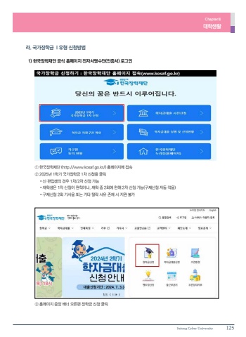 Sejong Cyber University 125Chapter%u2162%ub300%ud559%uc0dd%ud65c%ub77c. %uad6d%uac00%uc7a5%ud559%uae08 I %uc720%ud615 %uc2e0%uccad%ubc29%ubc95 1) %ud55c%uad6d%uc7a5%ud559%uc7ac%ub2e8 %uacf5%uc2dd %ud648%ud398%uc774%uc9c0 %uc804%uc790%uc11c%uba85%uc218%ub2e8(%uc778%uc99d%uc11c) %ub85c%uadf8%uc778%u2460 %ud55c%uad6d%uc7a5%ud559%uc7ac%ub2e8 (http://www.kosaf.go.kr/) %ud648%ud398%uc774%uc9c0%uc5d0 %uc811%uc18d%u2461 2025%ub144 1%ud559%uae30 %uad6d%uac00%uc7a5%ud559%uae08 1%ucc28 %uc2e0%uccad%uc744 %ud074%ub9ad %u2022 %uc2e0%u00b7%ud3b8%uc785%uc0dd%uc758 %uacbd%uc6b0 1%ucc28/2%ucc28 %uc2e0%uccad %uac00%ub2a5 %u2022 %uc7ac%ud559%uc0dd%uc740 1%ucc28 %uc2e0%uccad%uc774 %uc6d0%uce59%uc774%ub098, %uc7ac%ud559 %uc911 2%ud68c%uc5d0 %ud55c%ud574 2%ucc28 %uc2e0%uccad %uac00%ub2a5(%uad6c%uc81c%uc2e0%uccad %uc790%ub3d9 %uc801%uc6a9) %u2022 %uad6c%uc81c%uc2e0%uccad 2%ud68c %uae30%uc0ac%uc6a9 %ub610%ub294 %uae30%ud0c0 %ud0c8%ub77d %uc0ac%uc720 %uc874%uc7ac %uc2dc %uc9c0%uc6d0 %ubd88%uac00%u2462 %ud648%ud398%uc774%uc9c0 %uc911%uc559 %ubc30%ub108 %uc624%ub978%ud3b8 %uc7a5%ud559%uae08 %uc2e0%uccad %ud074%ub9ad