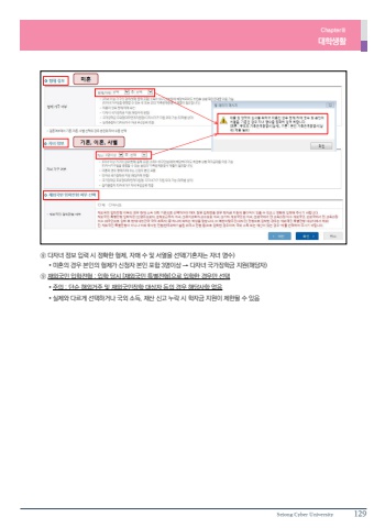 Sejong Cyber University 129Chapter%u2162%ub300%ud559%uc0dd%ud65c%u2467 %ub2e4%uc790%ub140 %uc815%ubcf4 %uc785%ub825 %uc2dc %uc815%ud655%ud55c %ud615%uc81c, %uc790%ub9e4 %uc218 %ubc0f %uc11c%uc5f4%uc744 %uc120%ud0dd(%uae30%ud63c%uc790%ub294 %uc790%ub140 %uba85%uc218) %u2022 %ubbf8%ud63c%uc758 %uacbd%uc6b0 %ubcf8%uc778%uc758 %ud615%uc81c%uac00 %uc2e0%uccad%uc790 %ubcf8%uc778 %ud3ec%ud568 3%uba85%uc774%uc0c1 %u2192 %ub2e4%uc790%ub140 %uad6d%uac00%uc7a5%ud559%uae08 %uc9c0%uc6d0(%ud574%ub2f9%uc790)%u2468 %uc7ac%uc678%uad6d%ubbfc %uc785%ud559%uc804%ud615 : %uc785%ud559 %ub2f9%uc2dc [%uc7ac%uc678%uad6d%ubbfc %ud2b9%ubcc4%uc804%ud615]%uc73c%ub85c %uc785%ud559%ud55c %uacbd%uc6b0%ub9cc %uc120%ud0dd %u2022 %uc8fc%uc758 : %ub2e8%uc21c %ud574%uc678%uac70%uc8fc %ubc0f %uc7ac%uc678%uad6d%ubbfc%uc7a5%ud559 %ub300%uc0c1%uc790 %ub4f1%uc758 %uacbd%uc6b0 %ud574%ub2f9%uc0ac%ud56d %uc5c6%uc74c %u2022 %uc2e4%uc81c%uc640 %ub2e4%ub974%uac8c %uc120%ud0dd%ud558%uac70%ub098 %uad6d%uc678 %uc18c%ub4dd, %uc7ac%uc0b0 %uc2e0%uace0 %ub204%ub77d %uc2dc %ud559%uc790%uae08 %uc9c0%uc6d0%uc774 %uc81c%ud55c%ub420 %uc218 %uc788%uc74c