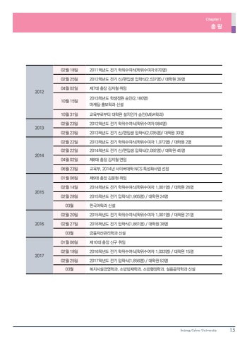 Sejong Cyber University 13201202%uc6d4 18%uc77c 2011%ud559%ub144%ub3c4 %uc804%uae30 %ud559%uc704%uc218%uc5ec%uc2dd(%ud559%uc704%uc218%uc5ec%uc790 870%uba85)02%uc6d4 25%uc77c 2012%ud559%ub144%ub3c4 %uc804%uae30 %uc2e0/%ud3b8%uc785%uc0dd %uc785%ud559%uc2dd(2,537%uba85) / %ub300%ud559%uc6d0 39%uba8504%uc6d4 02%uc77c %uc81c7%ub300 %ucd1d%uc7a5 %uae40%uc9c0%ucca0 %ucde8%uc78410%uc6d4 15%uc77c 2013%ud559%ub144%ub3c4 %ud559%uc0dd%uc815%uc6d0 %uc2b9%uc778(2,180%uba85)%ub9c8%ucf00%ud305%u00b7%ud64d%ubcf4%ud559%uacfc %uc2e0%uc12410%uc6d4 31%uc77c %uad50%uc721%ubd80%ub85c%ubd80%ud130 %ub300%ud559%uc6d0 %uc124%uce58%uc778%uac00 %uc2b9%uc778(MBA%ud559%uacfc)201302%uc6d4 23%uc77c 2012%ud559%ub144%ub3c4 %uc804%uae30 %ud559%uc704%uc218%uc5ec%uc2dd(%ud559%uc704%uc218%uc5ec%uc790 984%uba85)02%uc6d4 23%uc77c 2013%ud559%ub144%ub3c4 %uc804%uae30 %uc2e0/%ud3b8%uc785%uc0dd %uc785%ud559%uc2dd(2,035%uba85)/ %ub300%ud559%uc6d0 33%uba85201402%uc6d4 22%uc77c 2013%ud559%ub144%ub3c4 %uc804%uae30 %ud559%uc704%uc218%uc5ec%uc2dd(%ud559%uc704%uc218%uc5ec%uc790 1,072%uba85) / %ub300%ud559%uc6d0 2%uba8502%uc6d4 22%uc77c 2014%ud559%ub144%ub3c4 %uc804%uae30 %uc2e0/%ud3b8%uc785%uc0dd %uc785%ud559%uc2dd(2,092%uba85) / %ub300%ud559%uc6d0 45%uba8504%uc6d4 02%uc77c %uc81c8%ub300 %ucd1d%uc7a5 %uae40%uc9c0%ucca0 %uc5f0%uc78406%uc6d4 23%uc77c %uad50%uc721%ubd80, 2014%ub144 %uc0ac%uc774%ubc84%ub300%ud559 NCS %ud2b9%uc131%ud654%uc0ac%uc5c5 %uc120%uc815201501%uc6d4 06%uc77c %uc81c9%ub300 %ucd1d%uc7a5 %uae40%ubb38%ud604 %ucde8%uc78402%uc6d4 14%uc77c 2014%ud559%ub144%ub3c4 %uc804%uae30 %ud559%uc704%uc218%uc5ec%uc2dd(%ud559%uc704%uc218%uc5ec%uc790 1,001%uba85) / %ub300%ud559%uc6d0 26%uba8502%uc6d4 28%uc77c 2015%ud559%ub144%ub3c4 %uc804%uae30 %uc785%ud559%uc2dd(1,965%uba85) / %ub300%ud559%uc6d0 24%uba8503%uc6d4 %ud55c%uad6d%uc5b4%ud559%uacfc %uc2e0%uc124201602%uc6d4 20%uc77c 2015%ud559%ub144%ub3c4 %uc804%uae30 %ud559%uc704%uc218%uc5ec%uc2dd(%ud559%uc704%uc218%uc5ec%uc790 1,001%uba85) / %ub300%ud559%uc6d0 21%uba8502%uc6d4 27%uc77c 2016%ud559%ub144%ub3c4 %uc804%uae30 %uc785%ud559%uc2dd(1,861%uba85) / %ub300%ud559%uc6d0 38%uba8503%uc6d4 %uae08%uc735%uc790%uc0b0%uad00%ub9ac%ud559%uacfc %uc2e0%uc124201701%uc6d4 06%uc77c %uc81c10%ub300 %ucd1d%uc7a5 %uc2e0%uad6c %ucde8%uc78402%uc6d4 18%uc77c 2016%ud559%ub144%ub3c4 %uc804%uae30 %ud559%uc704%uc218%uc5ec%uc2dd(%ud559%uc704%uc218%uc5ec%uc790 1,033%uba85) / %ub300%ud559%uc6d0 15%uba8502%uc6d4 25%uc77c 2017%ud559%ub144%ub3c4 %uc804%uae30 %uc785%ud559%uc2dd(1,856%uba85) / %ub300%ud559%uc6d0 53%uba8503%uc6d4 %ubcf5%uc9c0%uc2dc%uc124%uacbd%uc601%ud559%uacfc, %uc18c%ubc29%ubc29%uc7ac%ud559%uacfc, %uc18c%ubc29%ud589%uc815%ud559%uacfc, %uc2e4%uc6a9%uc74c%uc545%ud559%uacfc %uc2e0%uc124Chapter%u2160%ucd1d %ub78c