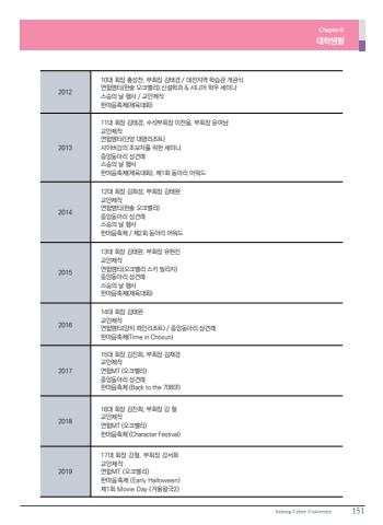 Sejong Cyber University 151Chapter%u2162%ub300%ud559%uc0dd%ud65c201210%ub300 %ud68c%uc7a5 %ud64d%uc131%ucc2c, %ubd80%ud68c%uc7a5 %uae40%ud0dc%uacbd / %ub300%uc804%uc9c0%uc5ed %ud559%uc2b5%uad00 %uac1c%uad00%uc2dd%uc5f0%ud569%uc5e0%ud2f0(%ud55c%uc220 %uc624%ud06c%ubc38%ub9ac),%uc2e0%uc124%ud559%uacfc & %uc2dc%ub2c8%uc5b4 %ud559%uc6b0 %uc138%ubbf8%ub098%uc2a4%uc2b9%uc758 %ub0a0 %ud589%uc0ac / %uad50%uc548%uc81c%uc791%ud55c%ub9c8%uc74c%ucd95%uc81c(%uccb4%uc721%ub300%ud68c)201311%ub300 %ud68c%uc7a5 %uae40%ud0dc%uacbd, %uc218%uc11d%ubd80%ud68c%uc7a5 %uc774%ucc2c%uc6a9, %ubd80%ud68c%uc7a5 %uc724%uc5ec%ub0a8%uad50%uc548%uc81c%uc791%uc5f0%ud569%uc5e0%ud2f0(%ub2e8%uc591 %ub300%uba85%ub9ac%uc870%ud2b8)%uc0ac%uc774%ubc84%uac15%uc758 %ucd08%ubcf4%uc790%ub97c %uc704%ud55c %uc138%ubbf8%ub098%uc911%uc559%ub3d9%uc544%ub9ac %uc0c1%uacac%ub840%uc2a4%uc2b9%uc758 %ub0a0 %ud589%uc0ac%ud55c%ub9c8%uc74c%ucd95%uc81c(%uccb4%uc721%ub300%ud68c), %uc81c1%ud68c %ub3d9%uc544%ub9ac %uc5b4%uc6cc%ub4dc201412%ub300 %ud68c%uc7a5 %uae40%ud76c%uc131, %ubd80%ud68c%uc7a5 %uae40%ud0dc%uc644%uad50%uc548%uc81c%uc791%uc5f0%ud569%uc5e0%ud2f0(%ud55c%uc194 %uc624%ud06c%ubc38%ub9ac)%uc911%uc559%ub3d9%uc544%ub9ac %uc0c1%uacac%ub840%uc2a4%uc2b9%uc758 %ub0a0 %ud589%uc0ac%ud55c%ub9c8%uc74c%ucd95%uc81c / %uc81c2%ud68c %ub3d9%uc544%ub9ac %uc5b4%uc6cc%ub4dc201513%ub300 %ud68c%uc7a5 %uae40%ud0dc%uc644, %ubd80%ud68c%uc7a5 %uc720%ud604%uc9c4%uad50%uc548%uc81c%uc791%uc5f0%ud569%uc5e0%ud2f0(%uc624%ud06c%ubc38%ub9ac %uc2a4%ud0a4 %ube4c%ub9ac%uc9c0)%uc911%uc559%ub3d9%uc544%ub9ac %uc0c1%uacac%ub840%uc2a4%uc2b9%uc758 %ub0a0 %ud589%uc0ac%ud55c%ub9c8%uc74c%ucd95%uc81c(%uccb4%uc721%ub300%ud68c)201614%ub300 %ud68c%uc7a5 %uae40%ud0dc%uc644%uad50%uc548%uc81c%uc791%uc5f0%ud569%uc5e0%ud2f0(%uc591%uc9c0 %ud30c%uc778%ub9ac%uc870%ud2b8) / %uc911%uc559%ub3d9%uc544%ub9ac %uc0c1%uacac%ub840%ud55c%ub9c8%uc74c%ucd95%uc81c(Time in Chosun)201715%ub300 %ud68c%uc7a5 %uae40%uc9c4%ud76c, %ubd80%ud68c%uc7a5 %uae40%uc7ac%uacbd%uad50%uc548%uc81c%uc791%uc5f0%ud569MT (%uc624%ud06c%ubc38%ub9ac)%uc911%uc559%ub3d9%uc544%ub9ac %uc0c1%uacac%ub840%ud55c%ub9c8%uc74c%ucd95%uc81c (Back to the 7080!)201816%ub300 %ud68c%uc7a5 %uae40%uc9c4%ud76c, %ubd80%ud68c%uc7a5 %uac15 %ucca0%uad50%uc548%uc81c%uc791%uc5f0%ud569MT (%uc624%ud06c%ubc38%ub9ac)%ud55c%ub9c8%uc74c%ucd95%uc81c (Character Festival)201917%ub300 %ud68c%uc7a5 %uac15%ucca0, %ubd80%ud68c%uc7a5 %uac15%uc11c%ud654%uad50%uc548%uc81c%uc791%uc5f0%ud569MT (%uc624%ud06c%ubc38%ub9ac)%ud55c%ub9c8%uc74c%ucd95%uc81c (Early Halloween)%uc81c1%ud68c Movie Day (%uaca8%uc6b8%uc655%uad6d2)