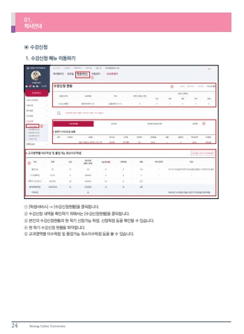 24 Sejong Cyber University01.%ud559%uc0ac%uc548%ub0b4%u2460 [%ud559%uc0dd%uc11c%ube44%uc2a4] %u2192 [%uc218%uac15%uc2e0%uccad%ud604%ud669]%uc744 %ud074%ub9ad%ud569%ub2c8%ub2e4.%u2461 %uc218%uac15%uc2e0%uccad %ub0b4%uc5ed%uc744 %ud655%uc778%ud558%uae30 %uc704%ud574%uc11c%ub294 [%uc218%uac15%uc2e0%uccad%ud604%ud669]%uc744 %ud074%ub9ad%ud569%ub2c8%ub2e4.%u2462 %ubcf8%uc778%uc758 %uc218%uac15%uc2e0%uccad%ud604%ud669%uacfc %ud604 %ud559%uae30 %uc2e0%uccad%uac00%ub2a5 %ud559%uc810, %uc2e0%uccad%ud559%uc810 %ub4f1%uc744 %ud655%uc778%ud560 %uc218 %uc788%uc2b5%ub2c8%ub2e4.%u2463 %ud604 %ud559%uae30 %uc218%uac15%uc2e0%uccad %ud604%ud669%uc744 %ud30c%uc545%ud569%ub2c8%ub2e4.%u2464 %uad50%uacfc%uc601%uc5ed%ubcc4 %uc774%uc218%ud559%uc810 %ubc0f %uc878%uc5c5%uac00%ub2a5 %ucd5c%uc18c%uc774%uc218%ud559%uc810 %ub4f1%uc744 %ubcfc %uc218 %uc788%uc2b5%ub2c8%ub2e4.%u2299 %uc218%uac15%uc2e0%uccad 1. %uc218%uac15%uc2e0%uccad %uba54%ub274 %uc774%ub3d9%ud558%uae30%u2460%u2461%u2464%u2462%u2463