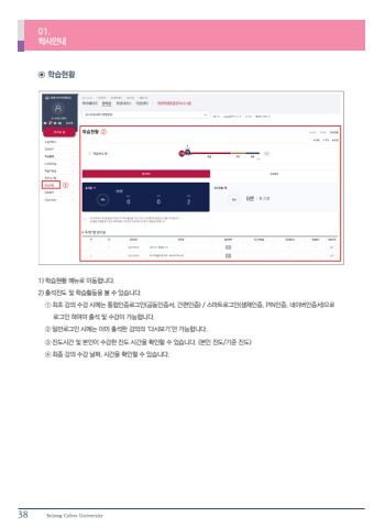 38 Sejong Cyber University01.%ud559%uc0ac%uc548%ub0b4%u2299 %ud559%uc2b5%ud604%ud6691) %ud559%uc2b5%ud604%ud669 %uba54%ub274%ub85c %uc774%ub3d9%ud569%ub2c8%ub2e4.2) %ucd9c%uc11d%uc9c4%ub3c4 %ubc0f %ud559%uc2b5%ud65c%ub3d9%uc744 %ubcfc %uc218 %uc788%uc2b5%ub2c8%ub2e4. %u2460 %ucd5c%ucd08 %uac15%uc758 %uc218%uac15 %uc2dc%uc5d0%ub294 %ud1b5%ud569%uc778%uc99d%ub85c%uadf8%uc778(%uacf5%ub3d9%uc778%uc99d%uc11c, %uac04%ud3b8%uc778%uc99d) / %uc2a4%ub9c8%ud2b8%ub85c%uadf8%uc778(%uc0dd%ucc44%uc778%uc99d, PIN%uc778%uc99d, %ub124%uc774%ubc84%uc778%uc99d%uc11c)%uc73c%ub85c %ub85c%uadf8%uc778 %ud558%uc5ec%uc57c %ucd9c%uc11d %ubc0f %uc218%uac15%uc774 %uac00%ub2a5%ud569%ub2c8%ub2e4. %u2461 %uc77c%ubc18%ub85c%uadf8%uc778 %uc2dc%uc5d0%ub294 %uc774%ubbf8 %ucd9c%uc11d%ud55c %uac15%uc758%uc758 %u2018%ub2e4%uc2dc%ubcf4%uae30%u2019%ub9cc %uac00%ub2a5%ud569%ub2c8%ub2e4. %u2462 %uc9c4%ub3c4%uc2dc%uac04 %ubc0f %ubcf8%uc778%uc774 %uc218%uac15%ud55c %uc9c4%ub3c4 %uc2dc%uac04%uc744 %ud655%uc778%ud560 %uc218 %uc788%uc2b5%ub2c8%ub2e4. (%ubcf8%uc778 %uc9c4%ub3c4/%uae30%uc900 %uc9c4%ub3c4) %u2463 %ucd5c%uc885 %uac15%uc758 %uc218%uac15 %ub0a0%uc9dc, %uc2dc%uac04%uc744 %ud655%uc778%ud560 %uc218 %uc788%uc2b5%ub2c8%ub2e4.
