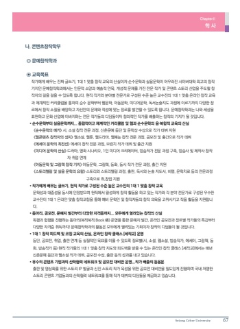 Sejong Cyber University 67Chapter%u2161%ud559 %uc0ac%ub098. %ucf58%ud150%uce20%ucc3d%uc791%ud559%ubd80 %u25ce %ubb38%uc608%ucc3d%uc791%ud559%uacfc %u2299 %uad50%uc721%ubaa9%ud45c %uc791%uac00%uc5d0%uac8c %ubc30%uc6b0%ub294 %uc9c4%uc9dc %uae00%uc4f0%uae30, 1%ub300 1 %ub9de%ucda4 %ucc3d%uc791 %uad50%uc721%uc758 %uc0b0%uc2e4%uc774%uc790 %uc21c%uc218%ubb38%ud559%uacfc %uc2e4%uc6a9%ubb38%ud559%uc774 %uc5b4%uc6b0%ub7ec%uc9c4 %uc0ac%uc774%ubc84%ub300%ud559 %ucd5c%uace0%uc758 %ucc3d%uc791%uae30%uc9c0%uc778 %ubb38%uc608%ucc3d%uc791%ud559%uacfc%uc5d0%uc11c%ub294 %uc778%ubb38%uc801 %uc18c%uc591%uacfc %uc608%uc220%uc801 %uc548%ubaa9, %uac1c%uc131%uc801 %ubb38%uccb4%ub97c %uac00%uc9c4 %uc804%ubb38 %uc791%uac00 %ubc0f %ucf58%ud150%uce20 %uc2a4%ud1a0%ub9ac %uc0b0%uc5c5%uc744 %uc8fc%ub3c4%ud560 %ucc3d%uc791%uc790%uc758 %uae38%uc744 %uac78%uc744 %uc218 %uc788%ub3c4%ub85d %ud569%ub2c8%ub2e4. %ud604%uc9c1 %uc791%uac00%uc640 %ubd84%uc57c%ubcc4 %uc804%ubb38%uac00%ub85c %uad6c%uc131%ub41c %uc218%uc900 %ub192%uc740 %uad50%uc218%uc9c4%uc758 1%ub300 1 %ub9de%ucda4 %uc628%ub77c%uc778 %ucc3d%uc791 %uad50%uc721%uacfc %uccb4%uacc4%uc801%uc778 %ucee4%ub9ac%ud058%ub7fc%uc744 %ud1b5%ud558%uc5ec %uc21c%uc218 %ubb38%ud559%ubd80%ud130 %uc6f9%ubb38%ud559, %uc544%ub3d9%ubb38%ud559, %ubbf8%ub514%uc5b4%ubb38%ud559, %ub3c5%uc11c%ub17c%uc220%uc9c0%ub3c4 %uacfc%uc815%uc5d0 %uc774%ub974%uae30%uae4c%uc9c0 %ub2e4%uc591%ud55c %uc7a5%ub974%uc5d0%uc11c %ucc3d%uc791 %uc18c%uc9c8%uc744 %ubc30%uc591%ud558%uace0 %uc790%uc2e0%ub9cc%uc758 %ubb38%uccb4%uc640 %uc801%uc131%uc5d0 %ub9de%ub294 %uc7a5%ub974%ub97c %ubc1c%uacac%ud560 %uc218 %uc788%ub3c4%ub85d %ud569%ub2c8%ub2e4. %ubb38%uc608%ucc3d%uc791%ud559%uacfc%ub294 %ub098%uc640 %uc138%uc0c1%uc744 %ud45c%ud604%ud558%uace0 %ubb38%ud654 %uc0b0%uc5c5%uc5d0 %uc774%ubc14%uc9c0%ud558%ub294 %uc804%ubb38 %uc791%uac00%ub4e4%uc758 %ub514%ub524%ub3cc%uc774%uc790 %ucc3d%uc758%uc801%uc778 %uc791%uac00%ub97c %ubc30%ucd9c%ud558%ub294 %ucc3d%uc791%uc758 %uae30%uc9c0%uac00 %ub420 %uac83%uc785%ub2c8%ub2e4. %u2022 %uc21c%uc218%ubb38%ud559%ubd80%ud130 %uc2e4%uc6a9%ubb38%ud559%uae4c%uc9c0... %uc885%ud569%uc801%uc774%uace0 %uccb4%uacc4%uc801%uc778 %ucee4%ub9ac%ud058%ub7fc %ubc0f %uc6f9%uacfc %uc21c%uc218%ubb38%ud559%uc758 %uc735%u00b7%ubcf5%ud569%uc801 %uad50%uc721%uc758 %uc0b0%uc2e4 <%uc21c%uc218%ubb38%ud559%uc758 %uba54%uce74> %uc2dc, %uc18c%uc124 %ucc3d%uc791 %uc804%ubb38 %uacfc%uc815, %uc2e0%ucd98%ubb38%uc608 %ub4f1%ub2e8 %ubc0f %ubb38%ud559%uc0c1 %uc218%uc0c1%uc73c%ub85c %uc791%uac00 %ub370%ubdd4 %uc9c0%uc6d0 <%uc6f9%ucf58%ud150%uce20 %ucc3d%uc791%uc790%uc758 %uc131%uc9c0> %uc6f9%uc18c%uc124, %uc6f9%ud230, %uc6f9%ub4dc%ub77c%ub9c8, %uc6f9%uc608%ub2a5 %ucc3d%uc791 %uc804%ubb38 %uacfc%uc815, %uacf5%ubaa8%uc804 %ubc0f %ucd9c%uac04%uc73c%ub85c %uc791%uac00 %ub370%ubdd4 <%uc5d0%uc138%uc774 %ubb38%ud559%uc758 %ucd5c%uc804%uc120> %uc5d0%uc138%uc774 %ucc3d%uc791 %uc804%ubb38 %uacfc%uc815, %ube0c%ub7f0%uce58 %uc791%uac00 %ub370%ubdd4 %ubc0f %ucd9c%uac04 %uc9c0%uc6d0 <%ubbf8%ub514%uc5b4 %ubb38%ud559%uc758 %uc0b0%uc2e4> %ub4dc%ub77c%ub9c8, %uc601%ud654 %uc2dc%ub098%ub9ac%uc624, 1%uc778 %ubbf8%ub514%uc5b4 %ud06c%ub9ac%uc5d0%uc774%ud130, %ubc29%uc1a1%uc791%uac00 %uc804%ubb38 %uacfc%uc815 %uad6c%ucd95, %ubc29%uc1a1%uc0ac %ubc0f %uc81c%uc791%uc0ac %ucc3d%uc791%uc790 %ucde8%uc5c5 %uc5f0%uacc4 <%uc544%ub3d9%ubb38%ud559 %ubc0f %uadf8%ub9bc%ucc45 %ucc3d%uc791 %uae30%uc9c0> %uc544%ub3d9%ubb38%ud559, %uadf8%ub9bc%ucc45, %ub3d9%ud654, %ub3d9%uc2dc %uc791%uac00 %uc804%ubb38 %uacfc%uc815, %ucd9c%uac04 %uc9c0%uc6d0 <%uc2a4%ud1a0%ub9ac%ud154%ub9c1 %ubc0f %uc2e4%uc6a9 %ubb38%ud559%uc758 %uc694%ub78c> %uc2a4%ud1a0%ub9ac%uc640 %uc2a4%ud1a0%ub9ac%ud154%ub9c1 %uacfc%uc815, %ucd9c%ud310, %ub3c5%uc11c%uc640 %ub17c%uc220 %uc9c0%ub3c4%uc0ac, %ube44%ud3c9, %ubb38%ud559%uce58%ub8cc %ub4f1%uc758 %uc804%ubb38%uacfc%uc815 %uad6c%ucd95%uc73c%ub85c %ucde8,%ucc3d%uc5c5 %uc9c0%uc6d0 %u2022 %uc791%uac00%uc5d0%uac8c %ubc30%uc6b0%ub294 %uae00%uc4f0%uae30. %ud604%uc9c1 %uc791%uac00%ub85c %uad6c%uc131%ub41c %uc218%uc900 %ub192%uc740 %uad50%uc218%uc9c4%uc758 1%ub300 1 %ub9de%ucda4 %ucc3d%uc791 %uad50%uc721 %ubb38%ud559%uc131%uacfc %ub300%uc911%uc131%uc744 %ub3d9%uc2dc%uc5d0 %uc778%uc815%ubc1b%uc73c%uba70 %ud604%uc9c1%uc5d0%uc11c %uc655%uc131%ud558%uac8c %ucc3d%uc791 %ud65c%ub3d9%uc744 %ud558%uace0 %uc788%ub294 %uc791%uac00%uc640 %uac01 %ubd84%uc57c %uc804%ubb38%uac00%ub85c %uad6c%uc131%ub41c %uc6b0%uc218%ud55c %uad50%uc218%uc9c4%uc774 1%ub300 1 %uc628%ub77c%uc778 %ub9de%ucda4 %ucc3d%uc791%ucf54%uce6d%uc744 %ud1b5%ud574 %uc608%ube44 %ubb38%ud559%uc778 %ubc0f %ucc3d%uc791%uc790%ub4e4%uc758 %ucc3d%uc791 %uc758%uc695%uc744 %uace0%ucde8%uc2dc%ud0a4%uace0 %uc791%ud488 %ud65c%ub3d9%uc744 %uc9c0%uc6d0%ud569%ub2c8%ub2e4. %u2022 %ub3d9%uc544%ub9ac, %uacf5%ubaa8%uc804, %ubb38%uc608%uc9c0 %ubc1c%uac04%ubd80%ud130 %ub2e4%uc591%ud55c %uc790%uaca9%uc99d%uae4c%uc9c0... %ubaa8%ub450%uc5d0%uac8c %uc5f4%ub824%uc788%ub294 %ucc3d%uc791%uc758 %uc0b0%uc2e4 %ub3c5%ud3c9%uacfc %ud569%ud3c9%uc744 %uc9c4%ud589%ud558%ub294 %ub3d9%uc544%ub9ac(%ubd81%uc801%ubd81%uc801 Book %u7a4d) %uc6b4%uc601%uc744 %ud1b5%ud55c %ubb38%uc608%uc9c0 %ubc1c%uac04, %uc628%ub77c%uc778 %uacf5%ubaa8%uc804%uacfc %uc7a5%ub974%ubcc4 %uc791%uac00%ub4e4%uc758 %ud2b9%uac15%ubd80%ud130 %ub2e4%uc591%ud55c %uc790%uaca9%uc99d %ucde8%ub4dd%uae4c%uc9c0! %ubb38%uc608%ucc3d%uc791%ud559%uacfc%uc758 %ud65c%ub3d9%uc740 %ubaa8%ub450%uc5d0%uac8c %uc5f4%ub824%uc788%ub294 %uae30%ud68c%uc774%uc790 %ucc3d%uc791%uc758 %ub514%ub524%ub3cc%uc774 %ub420 %uac83%uc785%ub2c8%ub2e4. %u2022 1%ub300 1 %ucc3d%uc791 %ud53c%ub4dc%ubc31 %ubc0f %ucf54%uce6d %uad50%uc721%uc758 %uc0b0%uc2e4, %uc628%ub77c%uc778 %ucc3d%uc791 %ud074%ub798%uc2a4 [%uc138%uc791%uad50] %uc6b4%uc601 %ub4f1%ub2e8, %uacf5%ubaa8%uc804, %ucde8%uc5c5, %ucd9c%ud310 %uc5f0%uacc4 %ub4f1 %uc2e4%uc9c8%uc801%uc778 %ubaa9%ud45c%ub97c %uc774%ub8f0 %uc218 %uc788%ub3c4%ub85d %uc7a5%ub974%ubcc4(%uc2dc, %uc18c%uc124, %uc6f9%uc18c%uc124, %ubc29%uc1a1%uc791%uac00, %uc5d0%uc138%uc774, %uadf8%ub9b