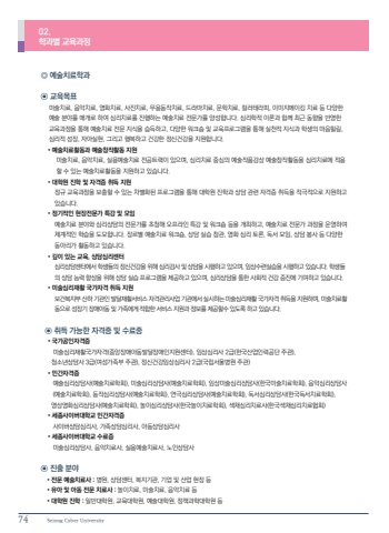 74 Sejong Cyber University02.%ud559%uacfc%ubcc4 %uad50%uc721%uacfc%uc815 %u25ce %uc608%uc220%uce58%ub8cc%ud559%uacfc %u2299 %uad50%uc721%ubaa9%ud45c %ubbf8%uc220%uce58%ub8cc, %uc74c%uc545%uce58%ub8cc, %uc601%ud654%uce58%ub8cc, %uc0ac%uc9c4%uce58%ub8cc, %ubb34%uc6a9%ub3d9%uc791%uce58%ub8cc, %ub4dc%ub77c%ub9c8%uce58%ub8cc, %ubb38%ud559%uce58%ub8cc, %uceec%ub7ec%ud14c%ub77c%ud53c, %uc774%ubbf8%uc9c0%uba54%uc774%ud0b9 %uce58%ub8cc %ub4f1 %ub2e4%uc591%ud55c %uc608%uc220 %ubd84%uc57c%ub97c %ub9e4%uac1c%ub85c %ud558%uc5ec %uc2ec%ub9ac%uce58%ub8cc%ub97c %uc9c4%ud589%ud558%ub294 %uc608%uc220%uce58%ub8cc %uc804%ubb38%uac00%ub97c %uc591%uc131%ud569%ub2c8%ub2e4. %uc2ec%ub9ac%ud559%uc801 %uc774%ub860%uacfc %ud568%uaed8 %ucd5c%uadfc %ub3d9%ud5a5%uc744 %ubc18%uc601%ud55c %uad50%uc721%uacfc%uc815%uc744 %ud1b5%ud574 %uc608%uc220%uce58%ub8cc %uc804%ubb38 %uc9c0%uc2dd%uc744 %uc2b5%ub4dd%ud558%uace0, %ub2e4%uc591%ud55c %uc6cc%ud06c%uc20d %ubc0f %uad50%uc721%ud504%ub85c%uadf8%ub7a8%uc744 %ud1b5%ud574 %uc2e4%ucc9c%uc801 %uc9c0%uc2dd%uacfc %ud559%uc0dd%uc758 %ub9c8%uc74c%ud790%ub9c1, %uc2ec%ub9ac%uc801 %uc131%uc7a5, %uc790%uc544%uc2e4%ud604, %uadf8%ub9ac%uace0 %ud589%ubcf5%ud558%uace0 %uac74%uac15%ud55c %uc815%uc2e0%uac74%uac15%uc744 %uc9c0%uc6d0%ud569%ub2c8%ub2e4. %u2022 %uc608%uc220%uce58%ub8cc%ud65c%ub3d9%uacfc %uc608%uc220%ucc3d%uc791%ud65c%ub3d9 %uc9c0%uc6d0 %ubbf8%uc220%uce58%ub8cc, %uc74c%uc545%uce58%ub8cc, %uc2e4%uc6a9%uc608%uc220%uce58%ub8cc %uc804%uacf5%ud2b8%ub799%uc774 %uc788%uc73c%uba70, %uc2ec%ub9ac%uce58%ub8cc %uc911%uc2ec%uc758 %uc608%uc220%uc791%ud488%uac10%uc0c1 %uc608%uc220%ucc3d%uc791%ud65c%ub3d9%uc744 %uc2ec%ub9ac%uce58%ub8cc%uc5d0 %uc801%uc6a9%ud560 %uc218 %uc788%ub294 %uc608%uc220%uce58%ub8cc%ud65c%ub3d9%uc744 %uc9c0%uc6d0%ud558%uace0 %uc788%uc2b5%ub2c8%ub2e4. %u2022 %ub300%ud559%uc6d0 %uc9c4%ud559 %ubc0f %uc790%uaca9%uc99d %ucde8%ub4dd %uc9c0%uc6d0 %uc815%uaddc %uad50%uc721%uacfc%uc815%uc744 %ubcf4%ucda9%ud560 %uc218 %uc788%ub294 %ucc28%ubcc4%ud654%ub41c %ud504%ub85c%uadf8%ub7a8%uc744 %ud1b5%ud574 %ub300%ud559%uc6d0 %uc9c4%ud559%uacfc %uc0c1%ub2f4 %uad00%ub828 %uc790%uaca9%uc99d %ucde8%ub4dd%uc744 %uc801%uadf9%uc801%uc73c%ub85c %uc9c0%uc6d0%ud558%uace0 %uc788%uc2b5%ub2c8%ub2e4. %u2022 %uc815%uae30%uc801%uc778 %ud604%uc7a5%uc804%ubb38%uac00 %ud2b9%uac15 %ubc0f %ubaa8%uc784 %uc608%uc220%uce58%ub8cc %ubd84%uc57c%uc640 %uc2ec%ub9ac%uc0c1%ub2f4%uc758 %uc804%ubb38%uac00%ub97c %ucd08%uccad%ud574 %uc624%ud504%ub77c%uc778 %ud2b9%uac15 %ubc0f %uc6cc%ud06c%uc20d %ub4f1%uc744 %uac1c%ucd5c%ud558%uace0, %uc608%uc220%uce58%ub8cc %uc804%ubb38%uac00 %uacfc%uc815%uc744 %uc6b4%uc601%ud558%uc5ec %uccb4%uacc4%uc801%uc778 %ud559%uc2b5%uc744 %ub3c4%ubaa8%ud569%ub2c8%ub2e4. %uc7a5%ub974%ubcc4 %uc608%uc220%uce58%ub8cc %uc6cc%ud06c%uc20d, %uc0c1%ub2f4 %uc2e4%uc2b5 %ucc38%uad00, %uc601%ud654 %uc2ec%ub9ac %ud1a0%ub860, %ub3c5%uc11c %ubaa8%uc784, %uc0c1%ub2f4 %ubd09%uc0ac %ub4f1 %ub2e4%uc591%ud55c %ub3d9%uc544%ub9ac%uac00 %ud65c%ub3d9%ud558%uace0 %uc788%uc2b5%ub2c8%ub2e4. %u2022 %uae4a%uc774 %uc788%ub294 %uad50%uc721, %uc0c1%ub2f4%uc2ec%ub9ac%uc13c%ud130 %uc2ec%ub9ac%uc0c1%ub2f4%uc13c%ud130%uc5d0%uc11c %ud559%uc0dd%ub4e4%uc758 %uc815%uc2e0%uac74%uac15%uc744 %uc704%ud574 %uc2ec%ub9ac%uac80%uc0ac %ubc0f %uc0c1%ub2f4%uc744 %uc2dc%ud589%ud558%uace0 %uc788%uc73c%uba70, %uc784%uc0c1%uc218%ub828%uc2e4%uc2b5%uc744 %uc2dc%ud589%ud558%uace0 %uc788%uc2b5%ub2c8%ub2e4. %ud559%uc0dd%ub4e4%uc758 %uc0c1%ub2f4 %ub2a5%ub825 %ud5a5%uc0c1%uc744 %uc704%ud574 %uc0c1%ub2f4 %uc2e4%uc2b5 %ud504%ub85c%uadf8%ub7a8%uc744 %uc81c%uacf5%ud558%uace0 %uc788%uc73c%uba70, %uc2ec%ub9ac%uc0c1%ub2f4%uc744 %ud1b5%ud55c %uc0ac%ud68c%uc801 %uac74%uac15 %uc99d%uc9c4%uc5d0 %uae30%uc5ec%ud558%uace0 %uc788%uc2b5%ub2c8%ub2e4. %u2022 %ubbf8%uc220%uc2ec%ub9ac%uc7ac%ud65c %uad6d%uac00%uc790%uaca9 %ucde8%ub4dd %uc9c0%uc6d0 %ubcf4%uac74%ubcf5%uc9c0%ubd80 %uc0b0%ud558 %uae30%uad00%uc778 %ubc1c%ub2ec%uc7ac%ud65c%uc11c%ube44%uc2a4 %uc790%uaca9%uad00%ub9ac%uc0ac%uc5c5 %uae30%uad00%uc5d0%uc11c %uc2e4%uc2dc%ud558%ub294 %ubbf8%uc220%uc2ec%ub9ac%uc7ac%ud65c %uad6d%uac00%uc790%uaca9 %ucde8%ub4dd%uc744 %uc9c0%uc6d0%ud558%uba70, %ubbf8%uc220%uce58%ub8cc%ud65c%ub3d9%uc73c%ub85c %uc131%uc7a5%uae30 %uc7a5%uc560%uc544%ub3d9 %ubc0f %uac00%uc871%uc5d0%uac8c %uc801%ud569%ud55c %uc11c%ube44%uc2a4 %uc9c0%uc6d0%uacfc %uc815%ubcf4%ub97c %uc81c%uacf5%ud560%uc218 %uc788%ub3c4%ub85d %ud558%uace0 %uc788%uc2b5%ub2c8%ub2e4. %u2299 %ucde8%ub4dd %uac00%ub2a5%ud55c %uc790%uaca9%uc99d %ubc0f %uc218%ub8cc%uc99d %u2022 %uad6d%uac00%uacf5%uc778%uc790%uaca9%uc99d %ubbf8%uc220%uc2ec%ub9ac%uc7ac%ud65c%uad6d%uac00%uc790%uaca9(%uc911%uc559%uc7a5%uc560%uc544%ub3d9%ubc1c%ub2ec%uc7a5%uc560%uc778%uc9c0%uc6d0%uc13c%ud130), %uc784%uc0c1%uc2ec%ub9ac%uc0ac 2%uae09(%ud55c%uad6d%uc0b0%uc5c5%uc778%ub825%uacf5%ub2e8 %uc8fc%uad00), %uccad%uc18c%ub144%uc0c1%ub2f4%uc0ac 3%uae09(%uc5ec%uc131%uac00%uc871%ubd80 %uc8fc%uad00), %uc815%uc2e0%uac74%uac15%uc784%uc0c1%uc2ec%ub9ac%uc0ac 2%uae09(%uad6d%ub9bd%uc11c%uc6b8%ubcd1%uc6d0 %uc8fc%uad00) %u2022 %ubbfc%uac04%uc790%uaca9%uc99d %uc608%uc220%uc2ec%ub9ac%uc0c1%ub2f4%uc0ac(%uc608%uc220%uce58%ub8cc%ud559%ud68c), %ubbf8%uc220%uc2ec%ub9ac%uc0c1%ub2f4%uc0ac(%uc608%uc220%uce58%ub8cc%ud559%ud68c), %uc784%uc0c1%ubbf8%uc220%uc2ec%ub9ac%uc0c1%ub2f4%uc0ac(%ud55c%uad6d%ubbf8%uc220%uce58%ub8cc%ud559%ud68c), %uc74c%uc545%uc2ec%ub9ac%uc0c1%ub2f4%uc0ac(%uc608%uc220%uce58%ub8cc%ud559%ud68c), %ub3d9%uc791%uc2ec%ub9ac%uc0c1%ub2f4%uc0ac(%uc608%uc220%uce58%ub8cc%ud559%ud68c), %uc5f0%uadf9%uc2ec%ub9ac%uc0c1%ub2f4%uc0ac(%uc608%uc220%uce58%ub8cc%ud559%ud68c), %ub3c5%uc11c%uc2ec%ub9ac%uc0c1%ub2f4%uc0ac(%ud55c%uad6d%ub3c5%uc11c%uce58%ub8cc%ud559%ud68c), %uc601%uc0c1%uc601%ud654%uc2ec%ub9ac%uc0c1%ub2f4%uc0ac(%uc608%uc220%uce58%ub8cc%ud559%ud68c), %ub180%uc774%uc2ec%ub9ac%uc0c1%ub2f4%uc0ac(%ud55c%uad6d%ub180%uc774%uce58%ub8cc%ud559%ud68c), %uc0c9%ucc44%uc2ec%ub9ac%uce58%ub8cc%uc0ac(%ud55c%uad6d%uc0c9%ucc44%uc2ec%ub9ac%uce58%ub8cc%ud611%ud68c) %u2022 %uc138%uc885%uc0ac%uc774%ubc84%ub300%ud559%uad50 %ubbfc