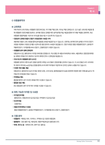 Sejong Cyber University 81Chapter%u2161%ud559 %uc0ac %u25ce %uc720%ud1b5%ubb3c%ub958%ud559%uacfc %u2299 %uad50%uc721%ubaa9%ud45c %uc800%ud76c %ud559%uacfc%uc758 %uad50%uc721 %ubaa9%ud45c%ub294 %uc720%ud1b5%ubb3c%ub958 %uc804%ubb38%uc778%uc7ac %uc591%uc131, %uc790%uae30%uac1c%ubc1c %uc5ed%ub7c9 %uac15%ud654, %ub9ac%ub354%uc2ed %uc5ed%ub7c9 %uac15%ud654%uc785%ub2c8%ub2e4. %uae4a%uace0 %ub113%uc740 %uad50%uc721%uacfc%uc815 %uc81c%uacf5%uc744 %ud1b5%ud574 %uc720%ud1b5%ubb3c%ub958 %uc804%ubb38%uc778%uc7ac%ub97c %uc591%uc131%ud558%uace0, %ubd84%uc57c%ubcc4 %uc804%ubb38%uc131 %uac15%ud654%ub97c %uc704%ud55c %uc2e4%ubb34%ubc00%ucc29%ud615 %ud559%uc2b5 %uc81c%uacf5%uc744 %ud1b5%ud574 %uc790%uae30%uac1c%ubc1c %uc5ed%ub7c9%uc744 %uac15%ud654%ud558%uba70, %ucd5c%uc2e0 %uc720%ud1b5%ubb3c%ub958 %ud1b5%ud569%uc5ed%ub7c9%uc744 %uae30%ubc18%uc73c%ub85c %ub9ac%ub354%uc2ed%uc744 %ud5a5%uc0c1%uc2dc%ud0ac %uc218 %uc788%ub3c4%ub85d %ud558%uace0 %uc788%uc2b5%ub2c8%ub2e4. %u2022 %uc804%ubb38%uc131%uc774 %uac15%ud654%ub41c %ub9de%ucda4%uc2dd %uc804%ubb38%uac00 %uacfc%uc815%uc6b4%uc601%uacfc %uc218%ub8cc%uc99d %uc218%uc5ec %uc138%ubd84%ud654%ub41c %ub9de%ucda4%uc2dd %uad50%uc721 %uacfc%uc815%uc744 %ud1b5%ud574 %uc2e4%ubb34%uc735%ud569%ud615 %uad50%uc721%uc744 %uc81c%uacf5%ubc1b%uc73c%uc2e4 %uc218 %uc788%uc2b5%ub2c8%ub2e4. %uc120%ud638%ud558%ub294 %ubd84%uc57c%uc5d0 %ub9de%uac8c %uc124%uacc4%ub41c 4%uac00%uc9c0%uc758 %uc804%ubb38%uac00 %uacfc%uc815%uc744 %uacfc%uc815%uc5d0%uc11c %uc9c0%uc815%ub41c %uac15%uc758%ub97c %uc218%uac15%ud558%uc2dc%uba74 %ucd1d%uc7a5 %uba85%uc758%uc758 %uc218%ub8cc%uc99d%uc774 %ubc1c%uae09%ub429%ub2c8%ub2e4. %uc804%ubb38%uac00%uacfc%uc815%uc740 %ud1b5%ud569 %uc720%ud1b5%ubb3c%ub958%uc804%ubb38%uac00, %uae00%ub85c%ubc8c %ubb34%uc5ed%ubb3c%ub958%uc804%ubb38%uac00, %ub514%uc9c0%ud138%uc720%ud1b5%uc11c%ube44%uc2a4%uc804%ubb38%uac00, %uad70%ubb3c%ub958%uc804%ubb38%uac00 %uacfc%uc815%uc774 %uc788%uc2b5%ub2c8%ub2e4. %u2022 %uc720%ud1b5%ubb3c%ub958 %ubd84%uc57c %uc0dd%uc560 %uacbd%ub825%uad00%ub9ac %uc720%ud1b5%uad00%ub9ac%uc0ac 2%uae09, %ubb3c%ub958%uad00%ub9ac%uc0ac %uc790%uaca9%uc99d %ub300%ube44%ubc18%uc744 %uc6b4%uc601%ud569%ub2c8%ub2e4. %ud559%uad50 %uc878%uc5c5 %ud6c4 %uc138%uc885%uc0ac%uc774%ubc84%ub300%ud559%uad50 MBA, %uc138%uc885%ub300%ud559%uad50 %uacbd%uc601%uc804%ubb38%ub300%ud559%uc6d0 %ub4f1 %ub300%ud559%uc6d0 %uc9c4%ud559%uc744 %uc801%uadf9 %uad8c%uc7a5%ud558%uace0 %uc788%uc73c%uba70 %ub300%ud559%uc6d0 %uc9c4%ud559 %uc2dc %uc7a5%ud559%uae08%uc744 %uc81c%uacf5%ud569%ub2c8%ub2e4. %u2022 %uad6d%ub0b4 %ucd5c%uace0%uc758 %uc720%ud1b5%ubb3c%ub958 %ubd84%uc57c %uad50%uc218%uc9c4 %uc720%ud1b5%ubb3c%ub958 %ubd84%uc57c%uc758 %uc774%ub860%uacfc %uc2e4%ubb34 %uacbd%ud5d8%uc774 %ud48d%ubd80%ud55c %ucd08%ud2b9%uae09 %uad50%uc218%uc9c4%ub4e4%uc774 %uc804%ubb38%ubd84%uc57c%ub97c %uac15%uc758%ud558%uace0 %uc788%uc2b5%ub2c8%ub2e4. %uc774 %uad50%uc218%uc9c4%ub4e4%uc740 %ubaa8%ub450 %uc0ac%uc774%ubc84%ub300%ud559 %ucd5c%ucd08%uc758 %ub77c%uc774%ube0c(Live)%uac15%uc758%uc2e4 %uc6b4%uc601%uc744 %ud1b5%ud574 %uad50%uc218%uc640 %ub9e4%uc8fc %ud559%uc6b0%ub4e4%uacfc %uc9c1%uc811%uc801%uc73c%ub85c %uc628%ub77c%uc778 %uc0c1%uc5d0%uc11c %uc18c%ud1b5%uc744 %ud558%uace0 %uc788%uc2b5%ub2c8%ub2e4. %u2022 %ub2e4%uc591%ud55c %ud559%uacfc %ud65c%ub3d9 %uc81c%uacf5 %uc720%ud1b5%uad00%ub9ac%uc0ac, %ubb3c%ub958%uad00%ub9ac%uc0ac %ub4f1%uc758 %uc790%uaca9%uc99d %ub300%ube44%ubc18 %uc6b4%uc601, %uc2a4%ud130%ub514%ubaa8%uc784, %ubb3c%ub958%ud0d0%ubc29%ub3d9%uc544%ub9ac %ub4f1%uc744 %uc6b4%uc601%ud558%uba70 %ud604%uc7a5%uc5d0 %ub300%ud55c %uc774%ud574%ub3c4%ub97c %ub192%uc774%uace0 %ud559%uc6b0%ub4e4%uac04%uc758 %uc720%ub300%uac10%uc744 %ub9cc%ub4e4%uace0 %uc788%uc2b5%ub2c8%ub2e4. %u2022 %ubb34%ud55c%ubcf5%uc2b5 %uc81c%ub3c4 %uc878%uc5c5%ud560 %ub54c%uae4c%uc9c0 %ub0b4%uac00 %uc774%uc218%ud55c %uacfc%ubaa9%uc744 %ubb34%ud55c %uc218%uac15%ud560 %uc218 %uc788%uc2b5%ub2c8%ub2e4. %u2022 %uc878%uc5c5%uc0dd %uccad%uac15 %uc81c%ub3c4 %ubcf8%uad50 %uc878%uc5c5%uc0dd%uc758 %uacbd%uc6b0 %ud55c %ud559%uae30%uc5d0 1%uacfc%ubaa9%uc744 %uc218%uac15%ud560 %uc218 %uc788%uc2b5%ub2c8%ub2e4. %u2299 %ucde8%ub4dd %uac00%ub2a5%ud55c %uc790%uaca9%uc99d %ubc0f %uc218%ub8cc%uc99d %u2022 %uad6d%uac00%uacf5%uc778%uc790%uaca9%uc99d %ubb3c%ub958%uad00%ub9ac%uc0ac, %uc720%ud1b5%uad00%ub9ac%uc0ac(1%uae09/2%uae09/3%uae09), %ubb34%uc5ed%uc601%uc5b4 (1%uae09/2%uae09/3%uae09) %u2022 %ubbfc%uac04%uc790%uaca9%uc99d %uad6d%uc81c%ubb34%uc5ed%uc0ac %u2022 %uc138%uc885%uc0ac%uc774%ubc84%ub300%ud559%uad50 %uc218%ub8cc%uc99d %ud1b5%ud569 %uc720%ud1b5%ubb3c%ub958%uc804%ubb38%uac00, %uae00%ub85c%ubc8c %ubb34%uc5ed%ubb3c%ub958%uc804%ubb38%uac00, %ub514%uc9c0%ud138%uc720%ud1b5%uc11c%ube44%uc2a4%uc804%ubb38%uac00, %uad70%ubb3c%ub958%uc804%ubb38%uac00 %u2299 %uc9c4%ucd9c %ubd84%uc57c %u2022 %uc720%ud1b5%ubd84%uc57c : %ubc31%ud654%uc810, %ub9c8%ud2b8, %uc774%ucee4%uba38%uc2a4, %ubb34%uc5ed%ud68c%uc0ac %ub4f1 %ub2e4%uc591%ud55c %uc720%ud1b5%uc5c5%uccb4 %u2022 %ubb3c%ub958%ubd84%uc57c : %uc804%ubb38 %ubb3c%ub958%uae30%uc5c5, %uc81c%uc870%uc5c5%uccb4, %uc720%ud1b5%ubb34%uc5ed%uc5c5%uccb4 %ub4f1%uc758 %ubb3c%ub958%uad00%ub828 %uc870%uc9c1 %u2022 %ud559%uacc4, %uc5f0%uad6c%uc18c %ub4f1 : %ub300%ud559%uc6d0 %uc9c4%ud559, %uc815%ubd80%uae30%uad00, %ud611%ud68c %ub4f1